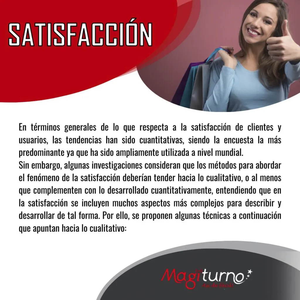 Métodos y técnicas para medir la satisfacción de los usuarios y clientes.