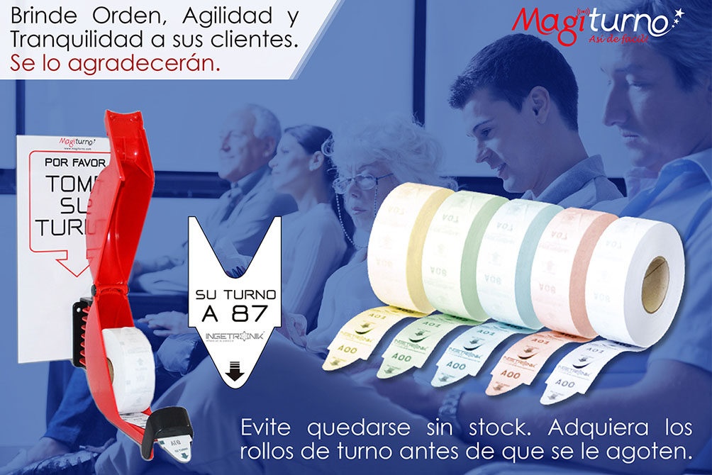 Le permitirán dispensar los turnos a sus clientes en orden de llegada. Los clientes serán luego llamados por su numero correspondiente.